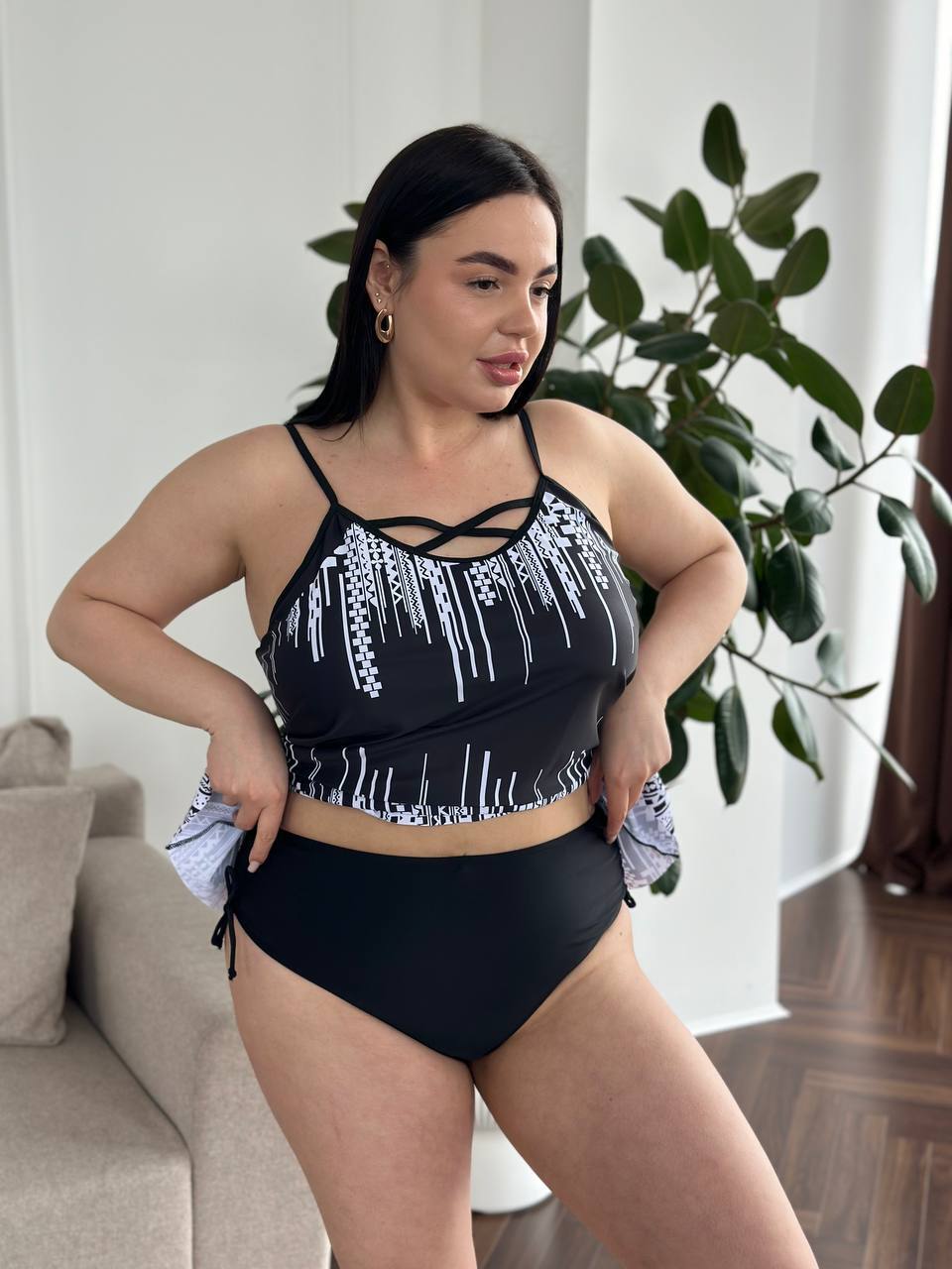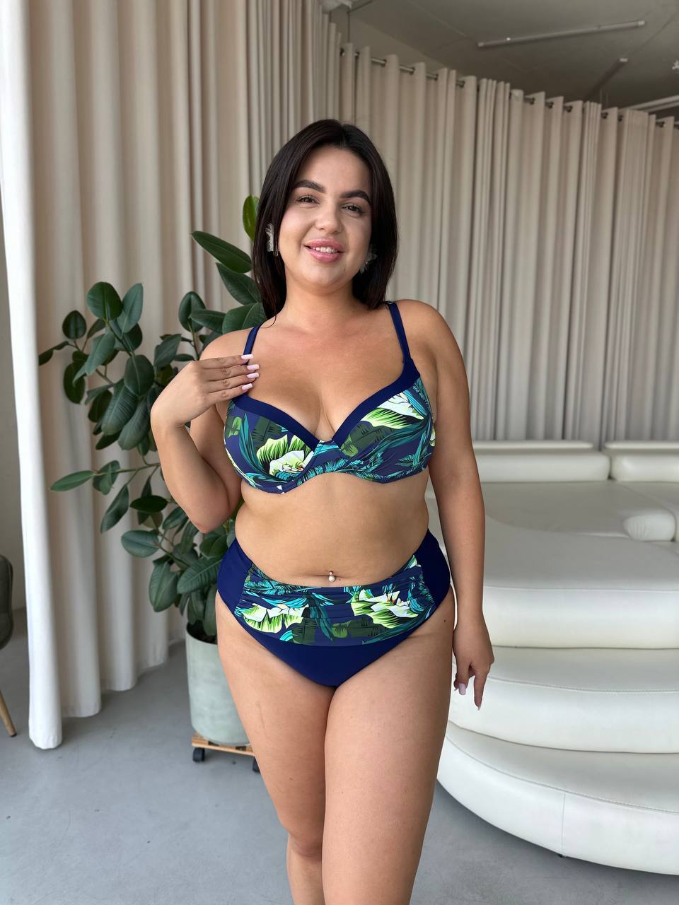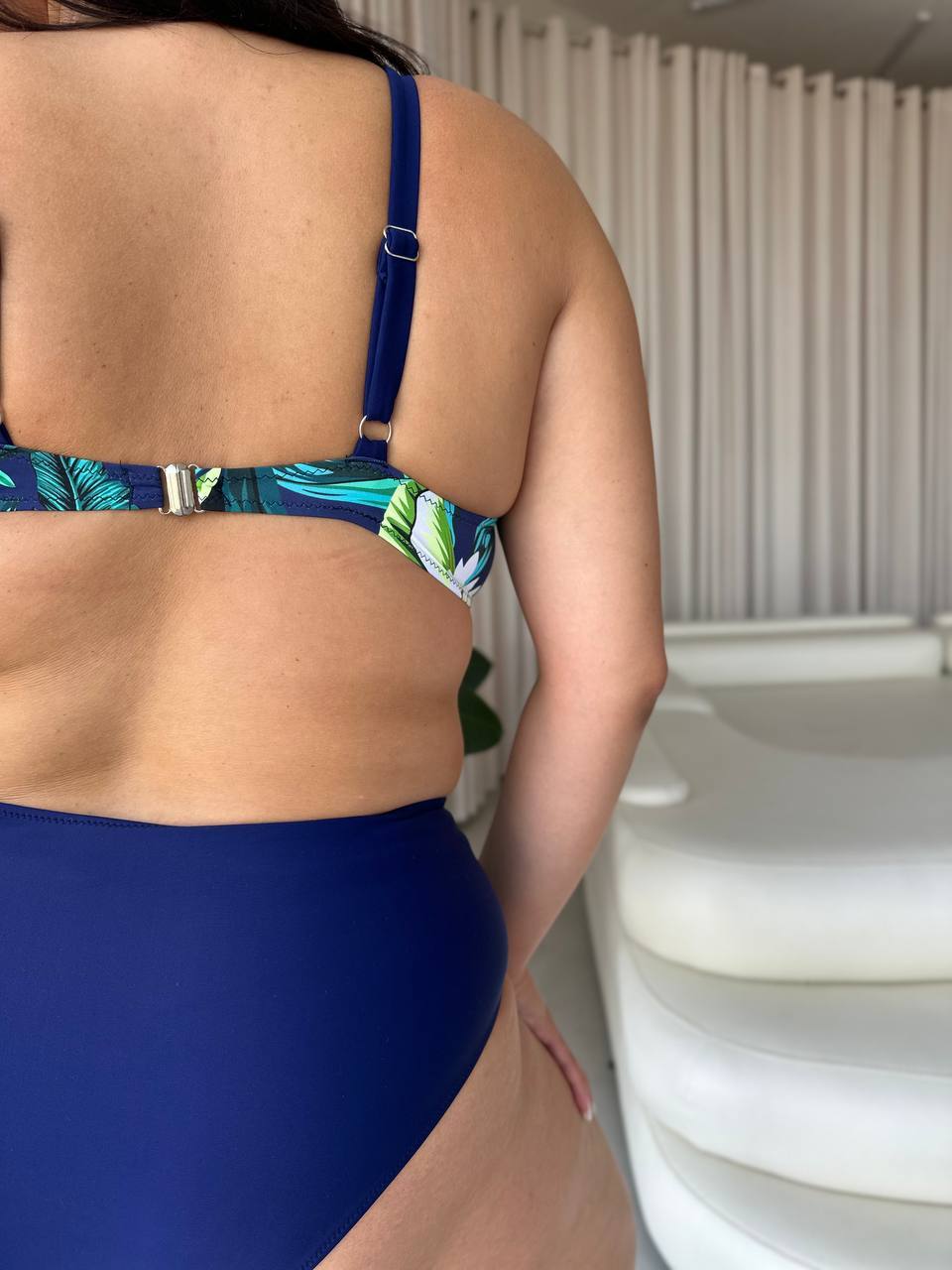 Бюстик з твердою чашкою з кісточками та широкими бретелями тримає форму навіть під час активного відпочинку, а високі трусики на талії — не перетискають, не врізаються, не сповзають
