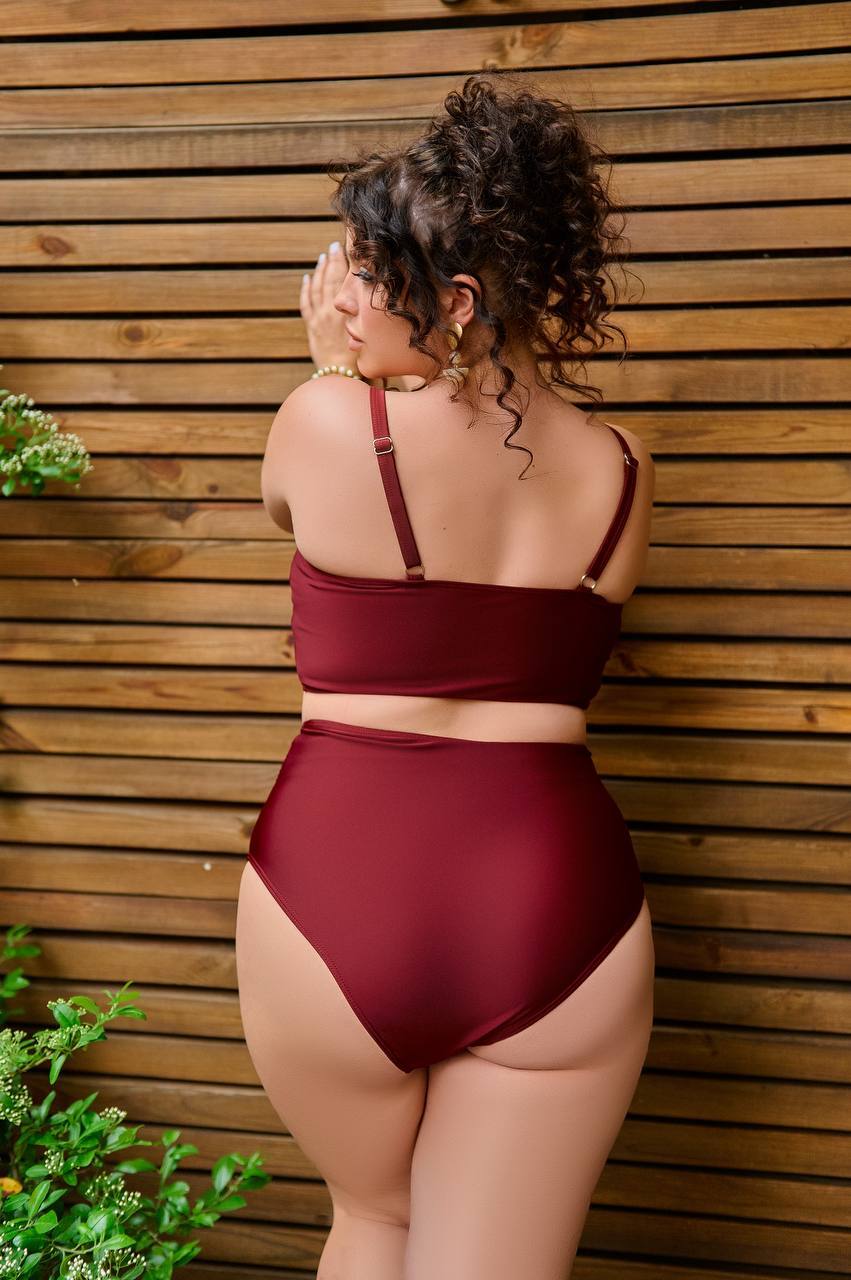 Бюстик з твердою чашкою з кісточками та широкими бретелями тримає форму навіть під час активного відпочинку, а високі трусики на талії — не перетискають, не врізаються, не сповзають